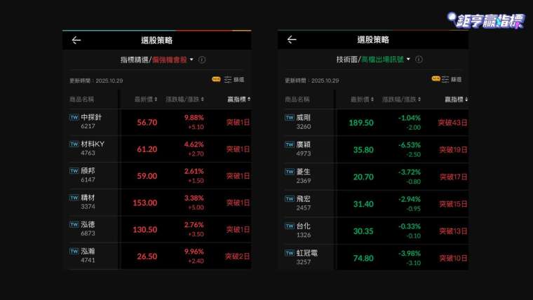 J 董建議,回檔訊號可關注《贏指標》選股策略當中的「偏強減碼股」或是「高檔出場訊號」,當持股出現在名單當中,就要考慮減碼出場,多方部分,則可以關注「偏強機會股」當中,剛突破不久的個股,有機會持續走高。