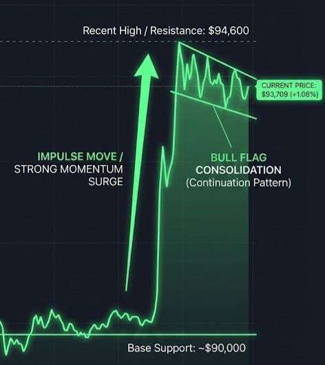 反之,若價格短線於 94,500 美元受阻回落,93,000 美元將成為第一道關鍵防守區。只要日線收盤價能維持於該區之上,整體多頭格局不會被破壞,反而屬於突破前的良性換手。真正結構性風險將出現在再次跌破 90,000 美元並失守 89,500 美元低點之後,屆時才會重新打開回測 80,000 美元甚至 70,000 美元流動性區的可能性。