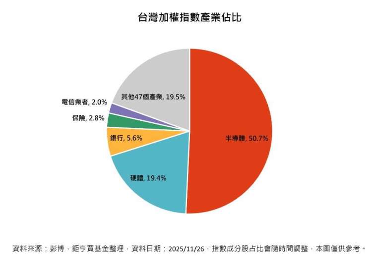 1. 半導體超過五成,科技決定台灣加權指數的靈魂