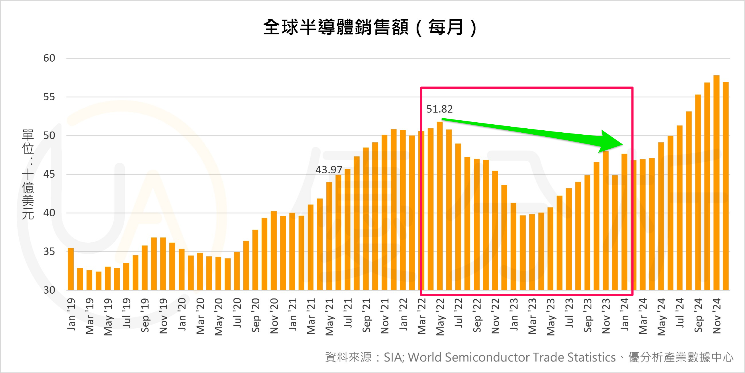 目前的半導體銷售也還沒全面復甦,只有台積電先進製程在好而已。