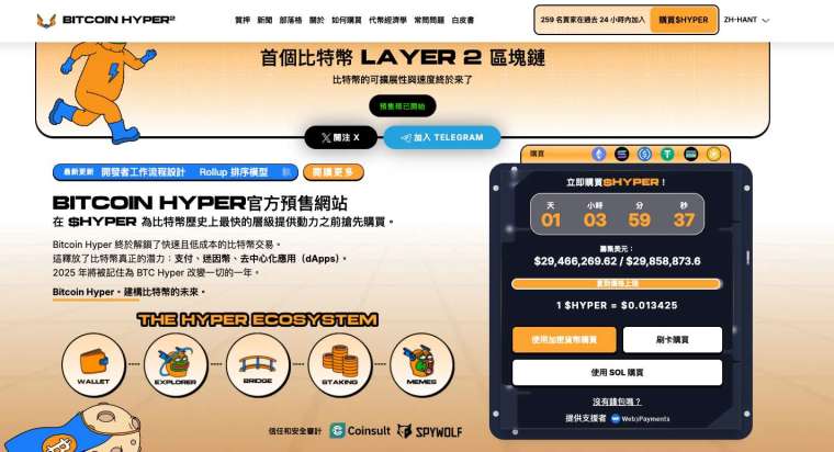 Bitcoin Hyper($HYPER)代幣的預售在尚未結束前已累積突破 2,945 萬美元,這個數字不僅代表資金高度集中,也顯示出比特幣 Layer2 敘事在 2025 的強勢回歸。其採用 Solana 虛擬機設計,使比特幣主網能首次以極低成本與高速度處理智能合約、遊戲、支付與模因相關應用。這種結構上的融合,使比特幣長期以來的不可編程限制得到突破,讓 BTC 真正具備跨鏈價值捕捉能力。