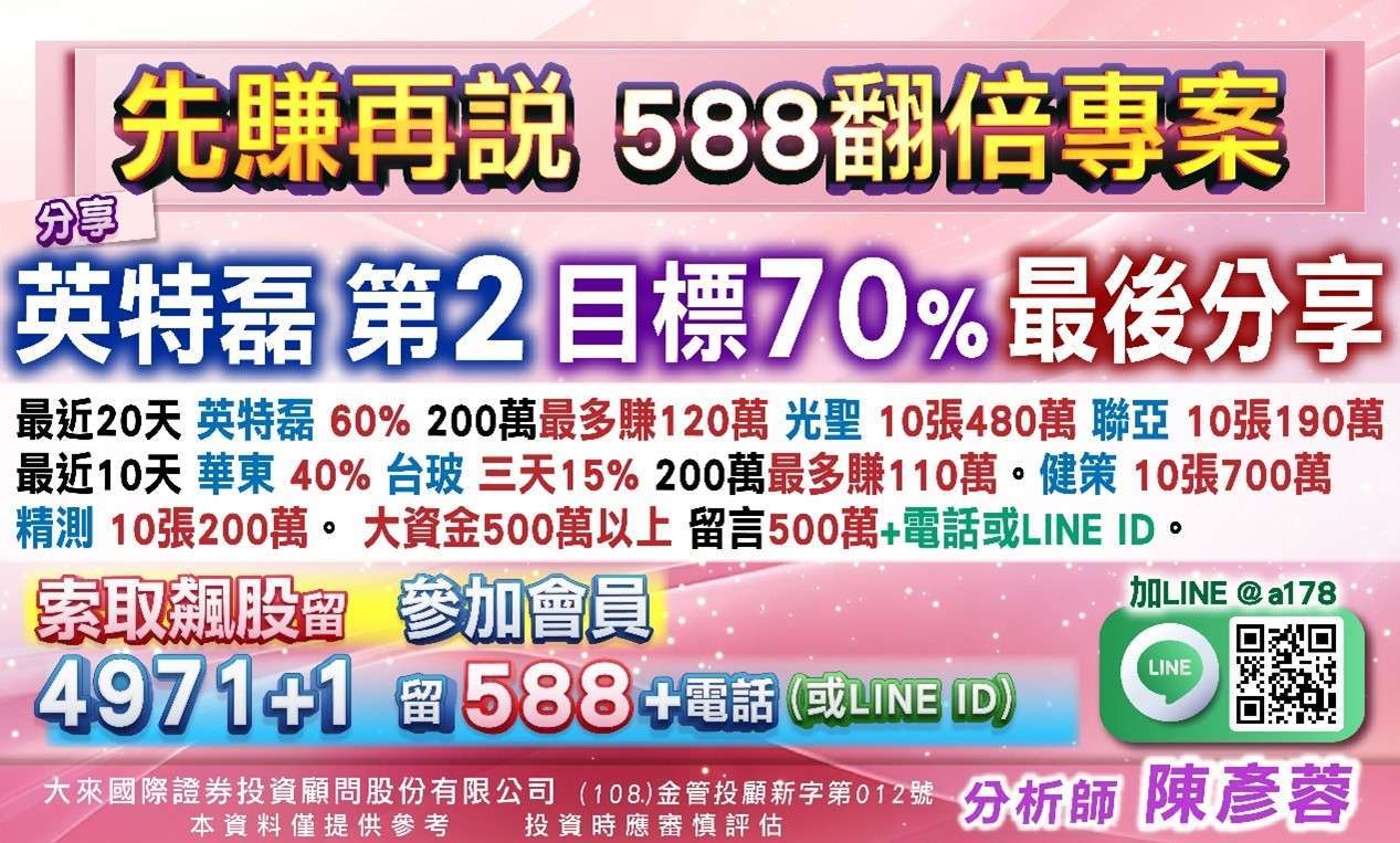 預告 英特磊 IET-KY(4971-TW),三個月翻倍 100%。【英特磊 第 2】,即將發動目標翻倍,加 line 留言【777+2】索取。