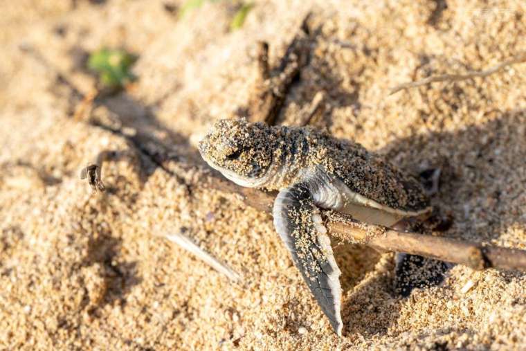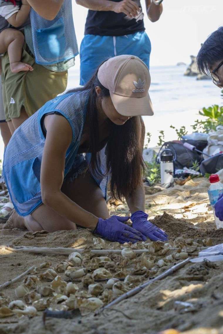 往年春夏是海龜上岸產卵的季節,不過全球暖化,今年到 11 月都還有母龜持續產卵,而這窩跨年寶寶就是海龜媽媽 11 月初所產下。在海龜產卵的季節,做為巡灘志工的一員,幾乎每天都要巡沙灘,紀錄下母龜產卵日期地點,並把卵窩圍起來避免遊客踩踏。