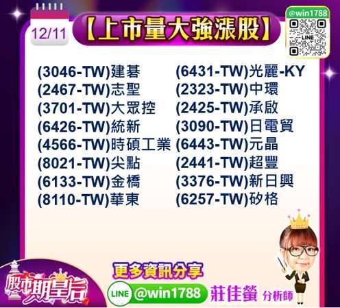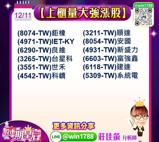 記憶體族群受漲價與業績帶動上攻,(8110-TW)華東,亮燈漲停,PCB 板卡族群續強,(8021-TW)尖點,連拉兩根漲停,(5498-TW)凱崴,也大漲走強,凱崴以 PCB 鑽孔代工及 (1303-TW) 南亞銅箔基板代理為核心業務,應用涵蓋車用電子、醫療器材等高毛利領域,並與主要 PCB 與 IC 載板大廠保持長期合作,11 月營收年增 40.56%,連三個月創新高,Q3 EPS 成功轉盈,法人看好後續業績延續成長;漲價三部曲的股票隨時有機會上攻。