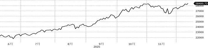 加權股價指數近 6 個月表現:(資料來源:Bloomberg,截至 2025/12/10)
