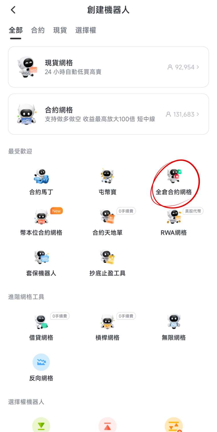 找到「全倉合約網格」