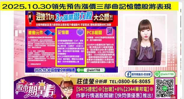 2025.10.30 領先預告漲價三部曲的股票再度點火向上,記憶體、被動元件、PCB 雙雙噴出!