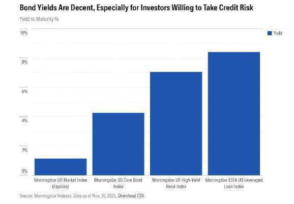 晨星美國核心債券指數(Morningstar US Core Bond Index)自 2022 年底以來的年化報酬率超過 4%,其目前殖利率 4.25% 也顯著高於通膨水準。