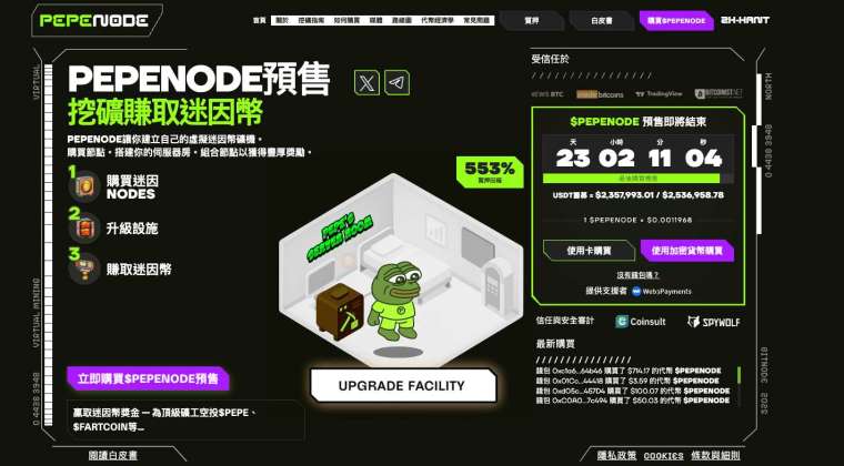 此外,Pepenode 將迷因文化視為運營核心,使參與者在升級與建立挖礦空間的過程中獲得高度沈浸式體驗。這種結構讓 Pepe 宇宙不再只是視覺符號,而成為具備成長曲線的經濟社群。其應用架構兼具趣味性與激勵機制,使 Pepenode 在迷因敘事逐漸疲乏的 2025 找到了新的增長方向。