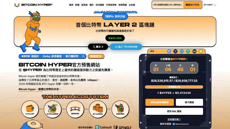 Bitcoin Hyper($HYPER)代幣的預售在尚未結束前已累積突破 2,950 萬美元,這個數字不僅代表資金高度集中,也顯示出比特幣 Layer2 敘事在 2025 的強勢回歸。其采用 Solana 虛擬機設計,使比特幣主網能首次以極低成本與高速度處理智能合約、遊戲、支付與模因相關應用。這種結構上的融合,使比特幣長期以來的不可編程限制得到突破,讓 BTC 真正具備跨鏈價值捕捉能力。