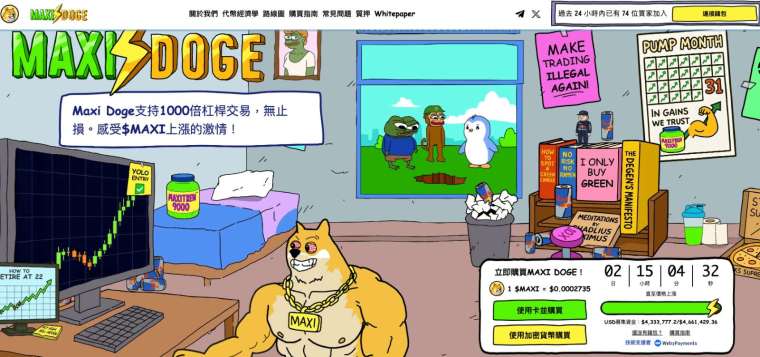Maxi Doge($MAXI)以「健身」、「極限能量」、「杠桿精神」高度戲劇化的敘事成功在迷因市場打出差異化定位。這種將訓練文化與迷因融合作為品牌調性的方式,使其能在眾多以幽默為核心的迷因幣中脫穎而出,形成明顯的視覺與文化記憶點。其預售價格為 0.0002735 美元,募資額已超過 432 萬美元,並向 440 萬美元區間持續攀升。