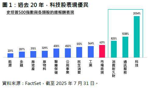 過去 20 年只有三個產業表現優於史坦普 500 指數,分別是:
