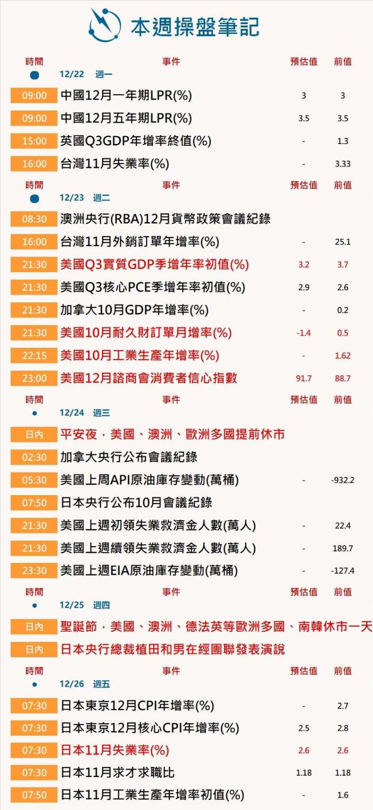 本週操盤筆記:耶誕行情、美Q3 GDP、植田和男演說