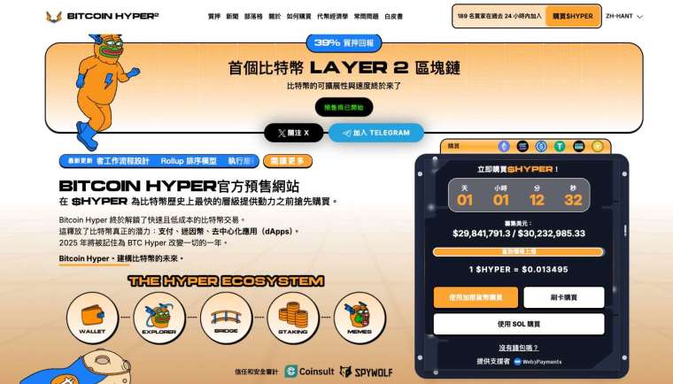 Bitcoin Hyper($HYPER)代幣的預售在尚未結束前已累積突破 2,980 萬美元,這個數字不僅代表資金高度集中,也顯示出比特幣 Layer2 敘事在 2025 的強勢回歸。其採用 Solana 虛擬機設計,使比特幣主網能首次以極低成本與高速度處理智能合約、遊戲、支付與模因相關應用。這種結構上的融合,使比特幣長期以來的不可編程限制得到突破,讓 BTC 真正具備跨鏈價值捕捉能力。