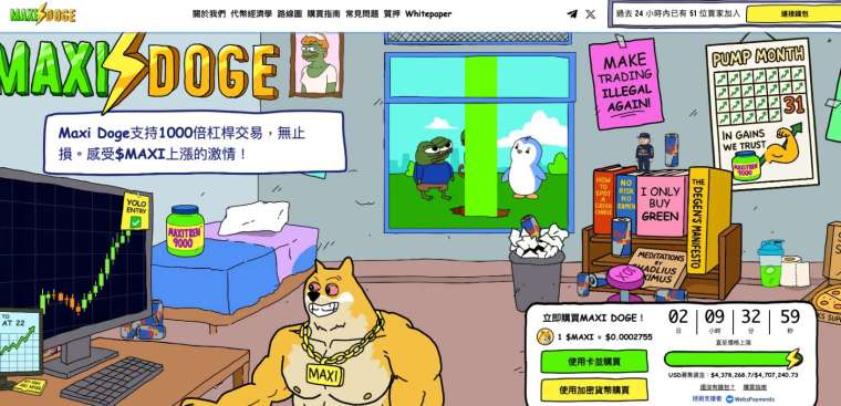 Maxi Doge($MAXI)以「健身」、「極限能量」、「杠桿精神」高度戲劇化的敘事成功在迷因市場打出差異化定位。這種將訓練文化與迷因融合作為品牌調性的方式,使其能在眾多以幽默為核心的迷因幣中脫穎而出,形成明顯的視覺與文化記憶點。其預售價格為 0.0002755 美元,募資額已超過 437 萬美元,並向 440 萬美元區間持續攀升。