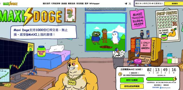 Maxi Doge($MAXI)以「健身」、「極限能量」、「杠桿精神」高度戲劇化的敘事成功在迷因市場打出差異化定位。這種將訓練文化與迷因融合作為品牌調性的方式,使其能在眾多以幽默為核心的迷因幣中脫穎而出,形成明顯的視覺與文化記憶點。其預售價格為 0.000275 美元,募資額已超過 436 萬美元,並向 440 萬美元區間持續攀升。