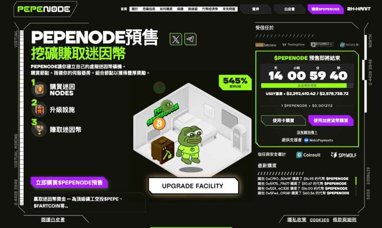 此外,Pepenode 將迷因文化視為運營核心,使參與者在升級與建立挖礦空間的過程中獲得高度沈浸式體驗。這種結構讓 Pepe 宇宙不再只是視覺符號,而成為具備成長曲線的經濟社群。其應用架構兼具趣味性與激勵機制,使 Pepenode 在迷因敘事逐漸疲乏的 2025 找到了新的增長方向。