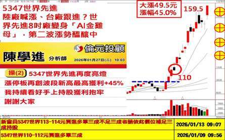 第三、今天我們要帶著家族成員來掌握的,一定是產業主流中的主流,產業主流中的主流在哪裡?就是看「AI」,核心部位仍是以 AI 半導體供應鏈及缺貨漲價題材股為主軸,相關供應鏈如先進封裝、ASIC(特殊應用積體電路)、PCB(印刷電路板)、CCL(銅箔基板)、ABF 載板、玻纖布暨電子關鍵材料、CPO 矽光子、水冷散熱、Power-HVDC、記憶體、被動元件、電力概念股、台積電概念股、以及低軌衛星和太空算力商機等持續看旺,仍將是市場聚焦的主軸不變,包括護國神山台積電 (2330-TW)、ASIC 設計創意 (3443-TW)、世芯 - KY(3661-TW)、聯發科 (2454-TW)、PCB 金像電 (2368-TW)、CCL 台光電 (2383-TW)、AI 電源台達電 (2308-TW)、ABF 欣興 (3037-TW)、景碩 (3189-TW)、CPO 光聖 (6442-TW)、聯亞 (3081-TW)、IET-KY(4971-TW)、波若威 (3163-TW)、玻纖布暨電子關鍵材料德宏 (5475-TW)、建榮 (5340-TW)、台玻 (1802-TW)、南亞 (1303-TW)、電解銅箔榮科 (4989-TW)、PCB 鑽頭尖點 (8021-TW)、凱崴 (5498-TW)、記憶體華邦電 (2344-TW)、南亞科 (2408-TW)、力積電 (6770-TW)、威剛 (3260-TW)、群聯 (8299-TW)、至上 (8112-TW)、華東 (8110-TW)、欣銓 (3264-TW)、低軌衛星昇達科 (3491-TW)、華通 (2313-TW)、燿華 (2367-TW)、耀登 (3138-TW)、金橋 (6133-TW)、導線架一詮 (2486-TW)、長科 *(6548-TW)、二線晶圓代工世界先進 (5347-TW)、聯電 (2303-TW)、甚至 AR + 機器人概念股、先進製程設備暨耗材、以及電力概念股等,逢回仍是值得留意,繼華邦電翻倍大賺、金橋⊕及世界⊕後,大師兄都會一檔接著一檔帶大家來掌握。