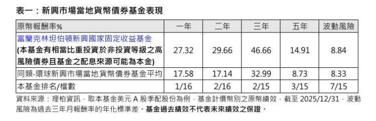 富蘭克林坦伯頓新興國家固定收益基金 (本基金有相當比重投資於非投資等級之高風險債券且基金之配息來源可能為本金) 經理人麥可.哈森泰博表示,美國因關稅造成的通膨可望於下半年有所緩解,但財政惡化恐影響美國公債投資吸引力。反觀部份新興國家因通膨降至央行目標而多維持資金寬鬆,且撙節財政亦多有成效,債息更普遍高於工業國家,匯集相當多的投資機會。自 2025 年起隨著美國例外論的鬆動以及美元貶值態勢明朗,已有越來越多投資人回流想尋找新興國家當地債市機會。
