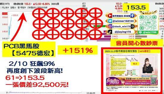 在產業面方面,AI 算力與高速運算熱潮正由終端設備延伸至上游材料端,(5475-TW) 德宏,61 => 153.5 領先預告後大漲 +151%,為台灣前三大玻纖布廠,主力業務涵蓋印刷電路板基層材料與玻璃布製造,近年深度布局 AI 與高速運算等高階應用,隨著國際玻纖材料大廠陸續調漲報價逾 30%,加上產能供給緊俏,玻纖布供需明顯失衡,德宏營收已連續創下新高,12 月單月更成功轉盈,基本面與題材面同步轉強,市場普遍認為,AI 伺服器與高階 PCB 對材料規格的要求持續拉升,高階玻纖布正進入新一輪上行循環,在國際材料漲價與訂單能見度提升的帶動下,德宏成為資金短線聚焦的關鍵標的之一。
