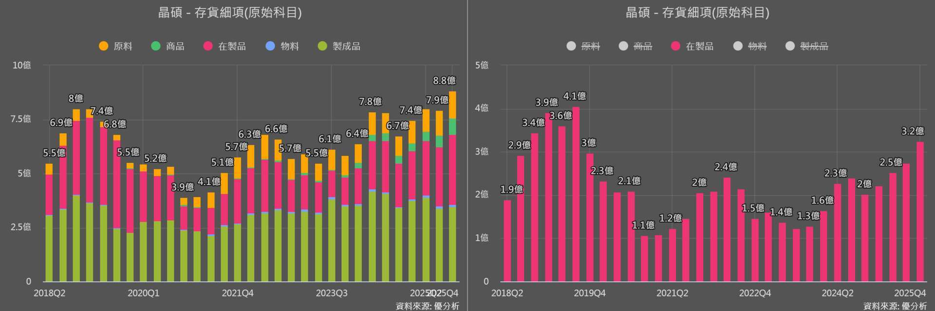 從晶碩(6491-TW) 最新生產活動可以發現,2025 年第四季存貨循環成長再加速,在製品金額也較 2025 年第三季出現跳升。這代表生產端已經開始為後續出貨做準備,配合新品與訂單節奏提前佈局。