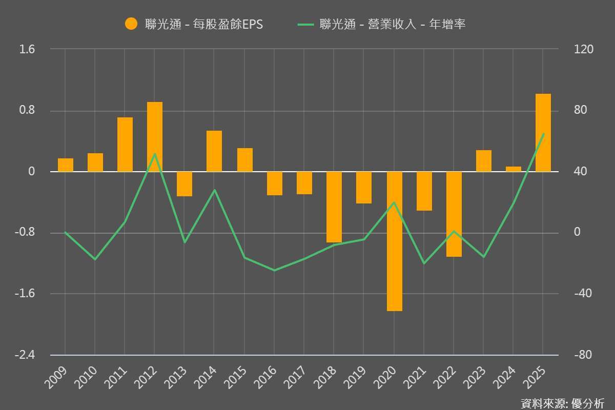 然而,近期市場另一條主線更為吸睛。黃仁勳看好 AI 基礎建設投資至少持續 8 年,加上 Lumentum 財報與展望優於預期,矽光子 CPO 進入大規模商轉階段,帶動光通訊族群全面噴出,聯光通也名列其中。