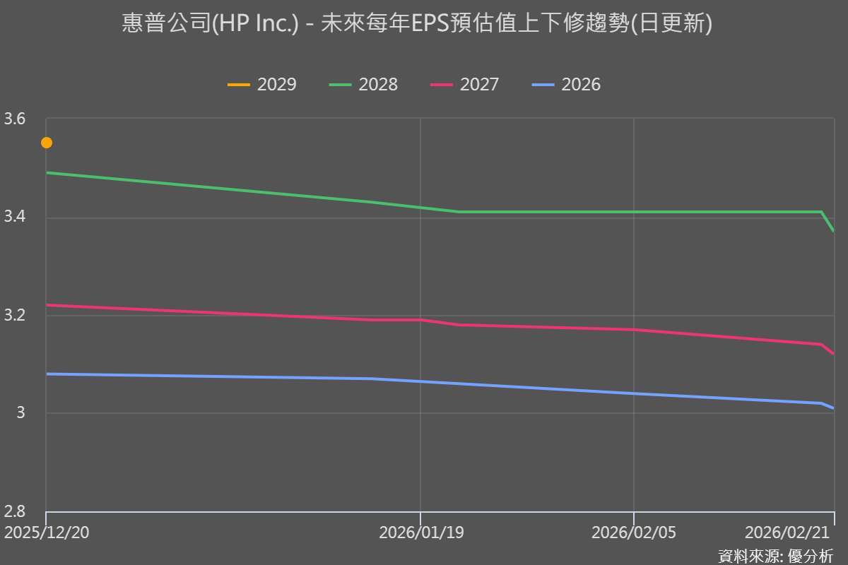 公司對於全年 non-GAAP EPS 指引維持 2.90–3.20 美元不變,但已把落點下修為「更靠近區間低端」,並預期 2026 年 PC 單位出貨將出現「雙位數下滑」;短期以第二季來看,non-GAAP EPS 預估區間為 0.70–0.76 美元,市場預期約 0.74 美元,顯示在記憶體成本持續上升的背景下,獲利端仍以防守為主、節奏偏保守。