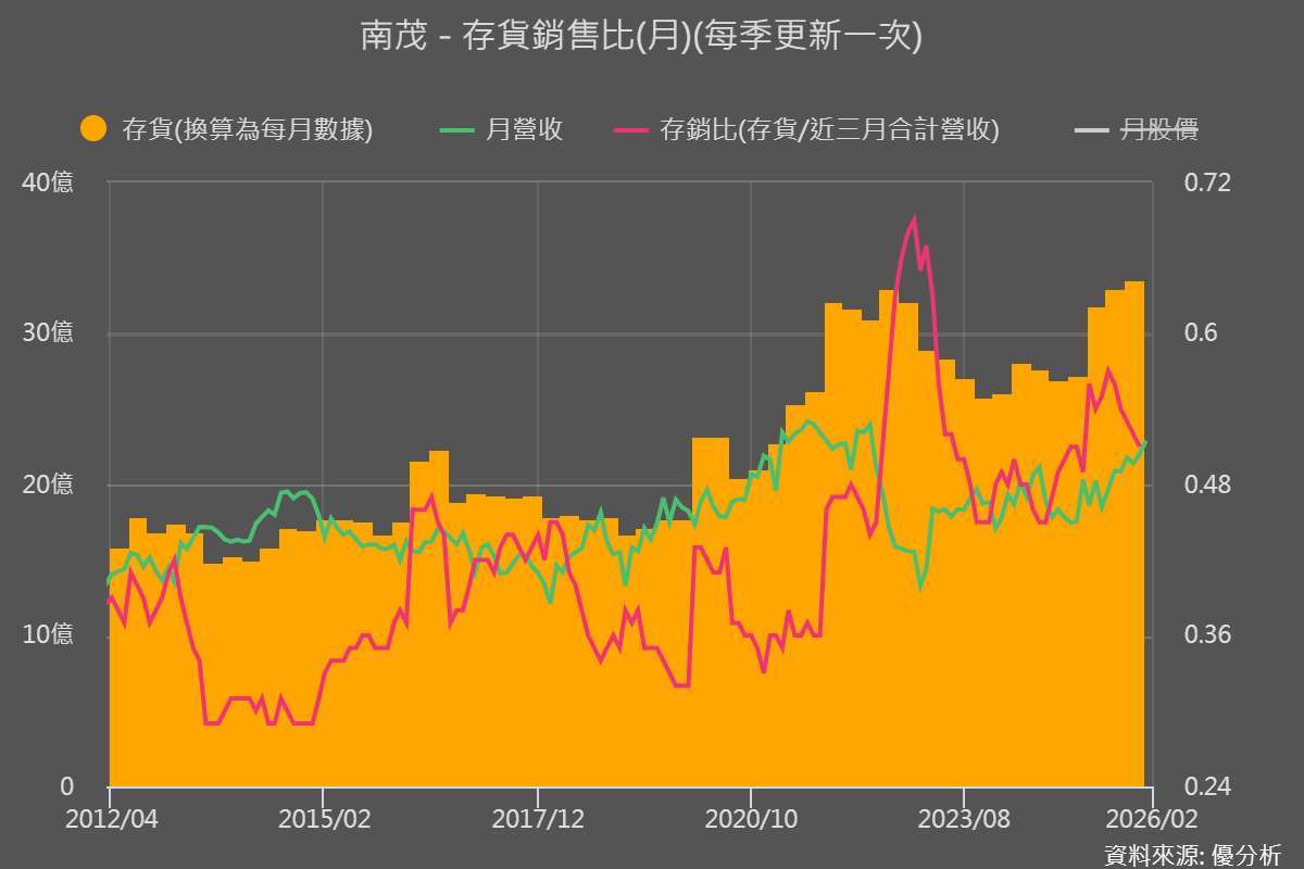從上圖可以看出,2025 年是一個明顯的轉折點,第四季存貨金額更來到歷史高位,且存銷比同步回落,循環開始由去化轉向回補。