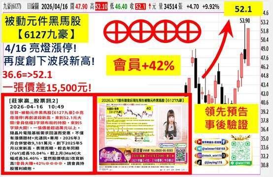 值得留意的是,(2409-TW) 友達,近期股價再創新高,公司積極推動轉型,跨入 CPO 領域並建立「三大營運支柱」,非顯示業務占比已突破四成,預期今年有望過半,長期目標 2030 年達七成,公司由傳統面板供應商轉型為跨產業解決方案提供者,聚焦車用、垂直場域與 AI 應用,並深化 Micro LED 與光通訊布局,未來成長動能備受市場期待。